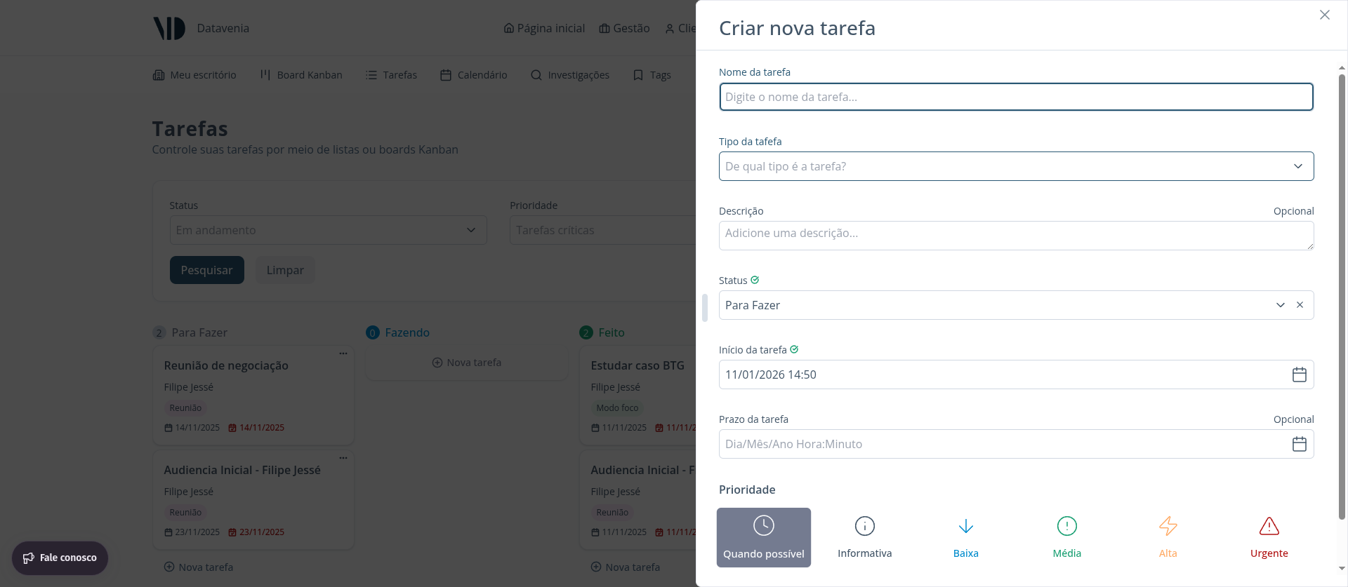 - Use prioridades — marque como "Alta" ou "Urgente" apenas o que realmente é crítico
